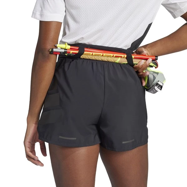 Less is more when you’re ticking off the miles. These adidas Terrex trail shorts combine a comfortable waistband with lightweight, sweat-wicking fabric that supports a distraction-free stride on runs, hikes and active days outdoors. A low-profile pocket on the back waist stows a key or cards, and mesh pockets around the waistband store gels and snacks.