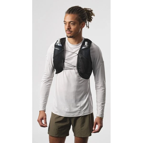 POCKETS & COMPARTMENTS – 2 front flask pockets: Designed to fit Salomon soft flasks, these front pockets limit bouncing. Top elastic loops secure your flasks and keep them ready to drink.